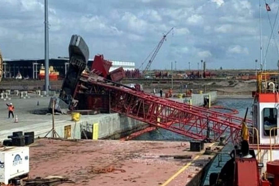 Um guindaste de grande porte, que segurava uma peça cilíndrica gigante, desabou no mar, provocando desespero e correria entre funcionários em uma área do Porto do Açu, em São João da Barra, no Norte Fluminense, na tarde desta sexta-feira (25).