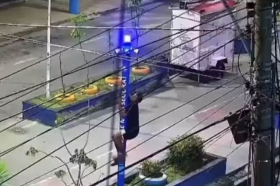 Segundo a Polícia Militar, o suspeito subiu em um poste por volta das 4h40 para quebrar os equipamentos de vigilância. Ele tentou escapar na garupa de uma motocicleta, mas foi identificado por outras câmeras da região e localizado pouco depois na Praça Vira Copos.